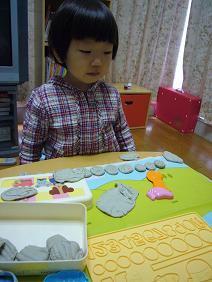 花はねんどで押し数字をつくってご満悦~♪