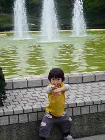 大好きな噴水の前でポーズ!