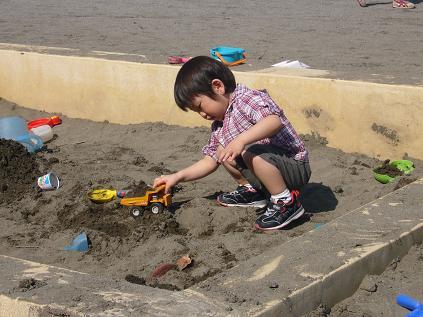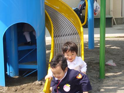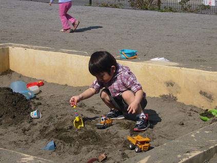 その後、保護者会があり。花はパパと外で遊んでいたみたい