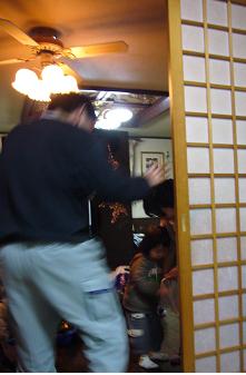 2階から順番に部屋をめぐり豆をばらまいていきます。