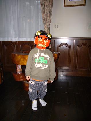 じいじ、ばあばの家で豆まきをしました。