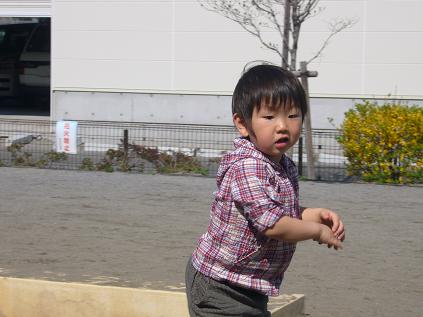 幼稚園の帰り道で縁石の上を歩いてて